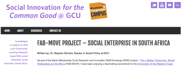 Dr. Stephen Sinclair from Glasgow Caledonian University (GCU) is currently seconded to the FAB MOVE partner University of the Western Cape (UWC) and has written a short article for the social innovation blog of Yunus Centre about his FAB-MOVE secondment. Stephen has done a lot of fascinating activities as the blog entry shows. Get access to the article here.